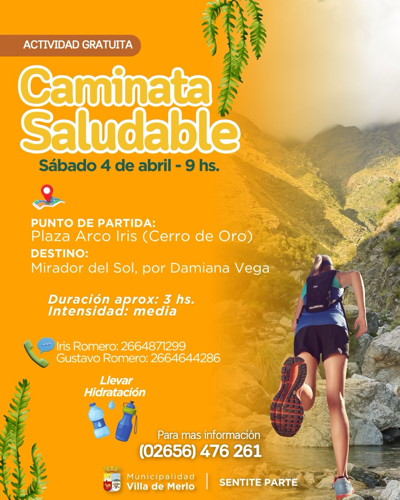📍El punto de partida será la plaza Arcoíris, en Cerro de Oro a las 9 hs, con destino al Mirador del Sol
