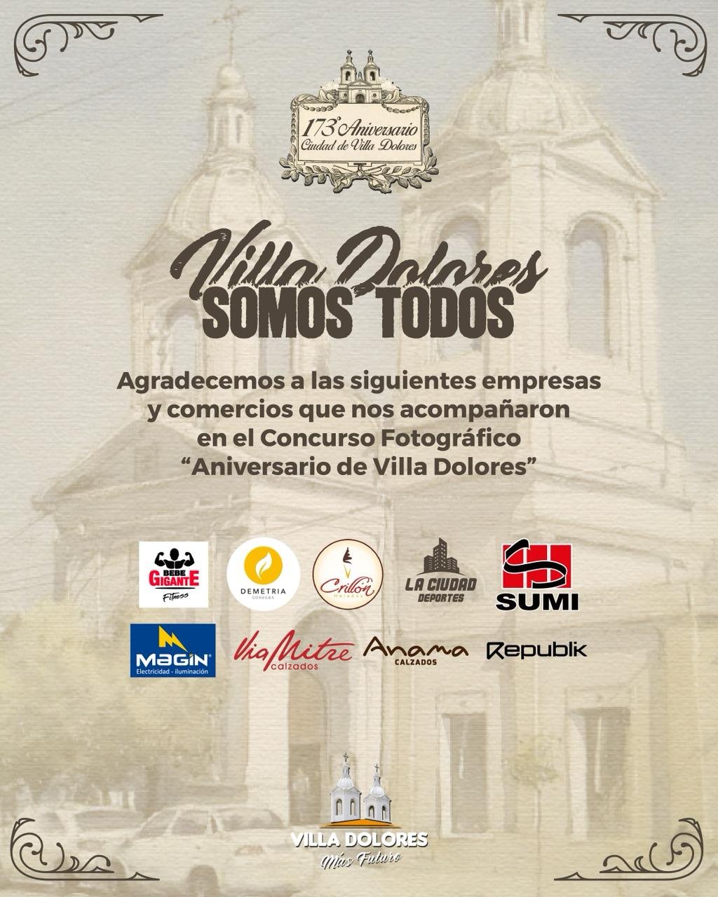 23 abril, 2026AGRADECEMOS A LAS EMPRESAS Y COMERCIOS QUE NOS ACOMPAÑARON EN EL CONCURSO FOTOGRÁFICO “ANIVERSARIO DE VILLA DOLORES”