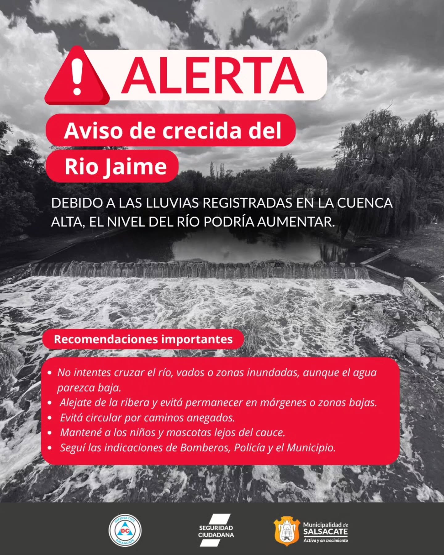 4 abril, 2026📣Atencion! ⚠️ Se espera una crecida del Río Jaime.