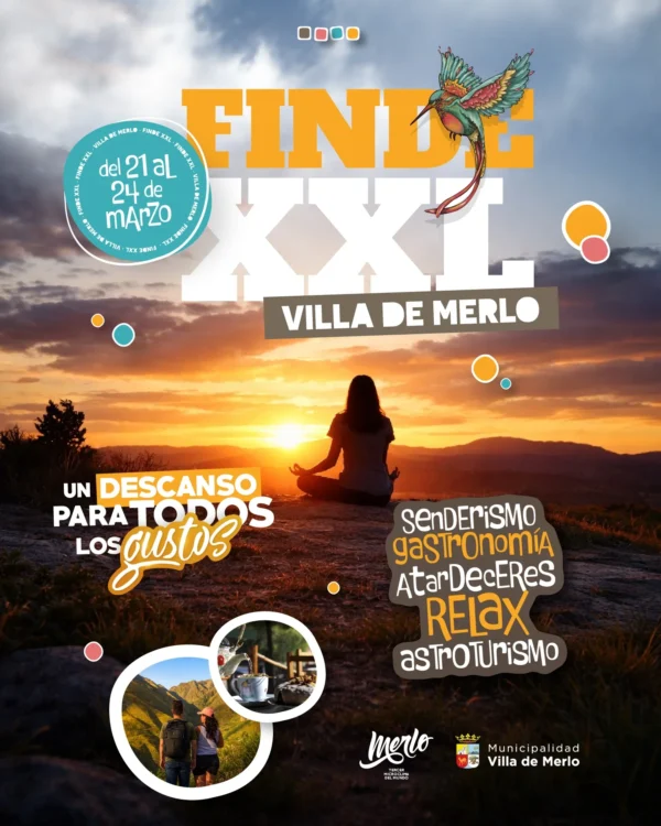 Villa de Merlo, ubicada en el norte de San Luis y a los pies de las Sierras de los Comechingones, es uno de los destinos turísticos más importantes de la región. Reconocida por su microclima, paisajes serranos y amplia oferta cultural, combina naturaleza, historia y servicios de primer nivel. Su agenda de eventos, gastronomía y actividades al aire libre la convierten en un punto de encuentro para visitantes de todo el país.