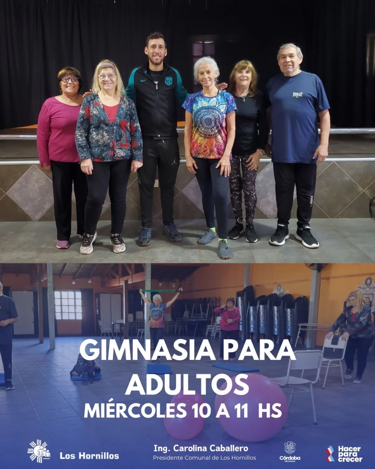 Comenzó gimnasia para adultos Todos los miércoles de 10 a11 hs Salón comunal