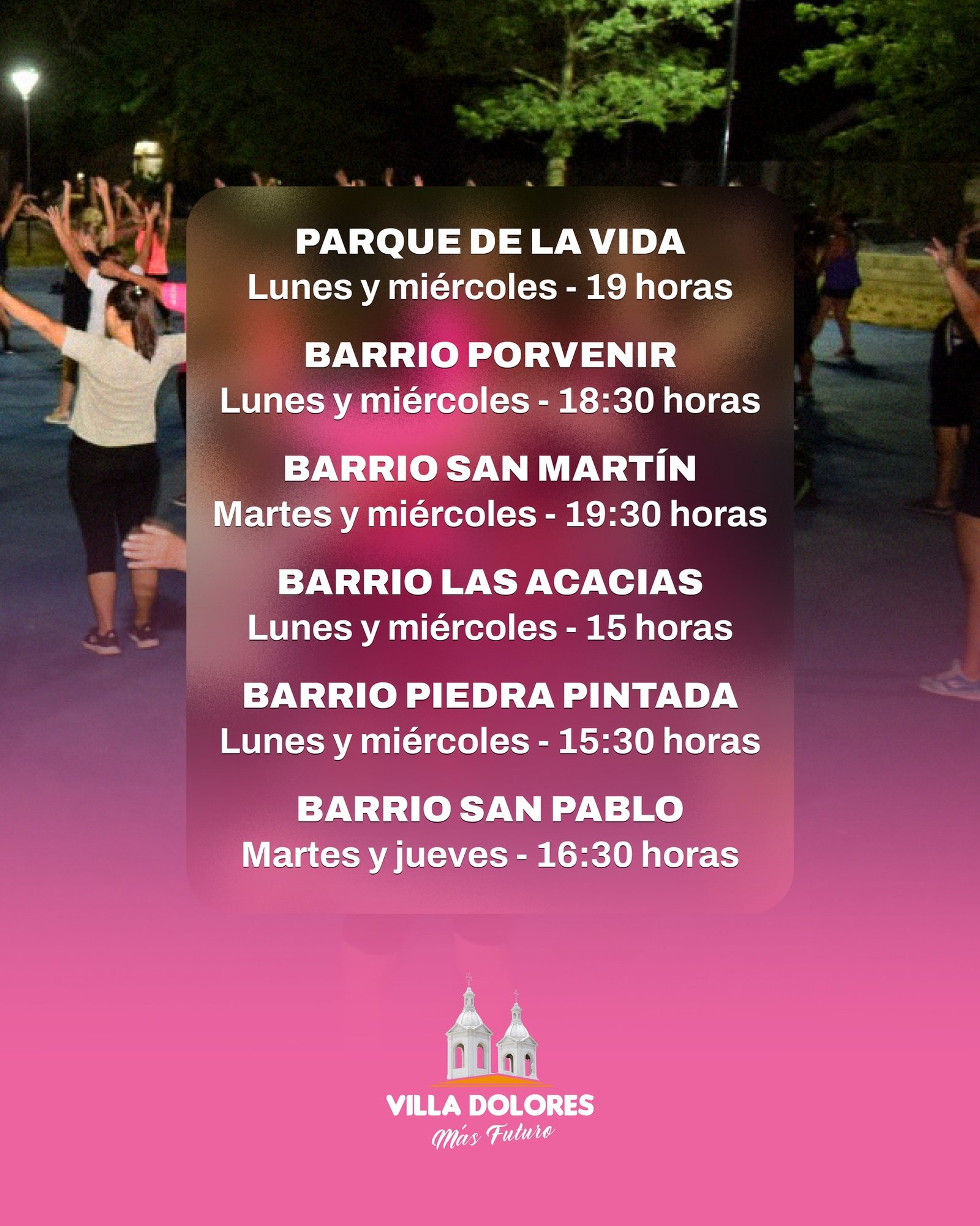 🕒 HORARIOS Y LUGARES: