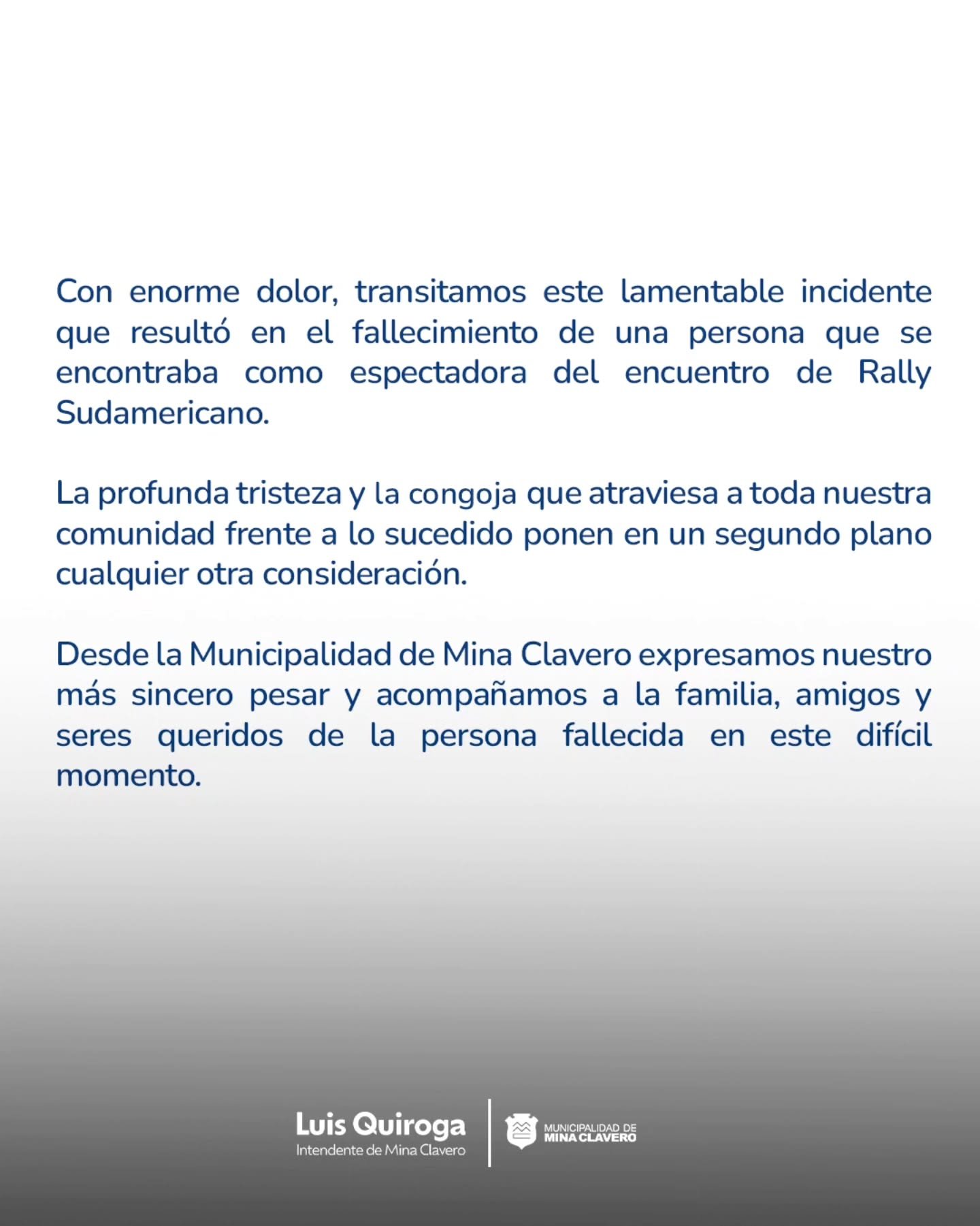 Comunicado Oficial Municipalidad de Mina Clavero | Acompañamos a la familia y seres queridos en este difícil momento