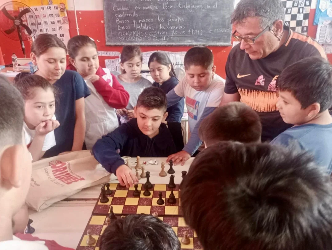 Continuamos con las clases de ajedrez en la Escuela Sarmiento, a cargo del profe