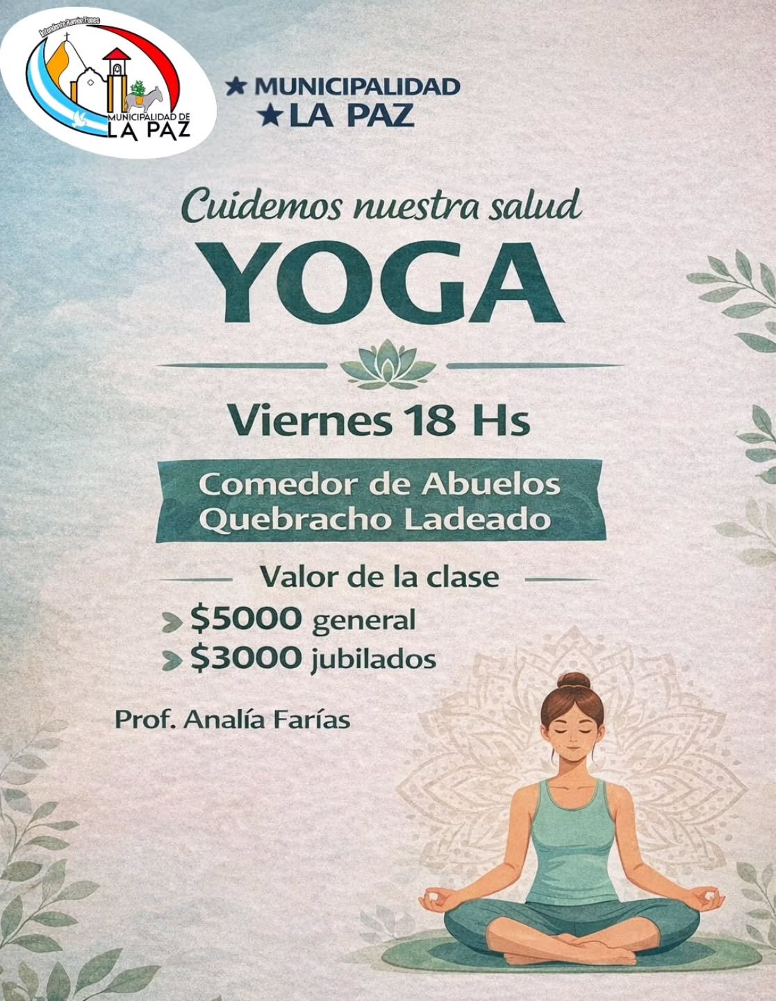 Cuidemos nuestra salud Te invitamos a sumarte a las clases de Yoga, un espacio