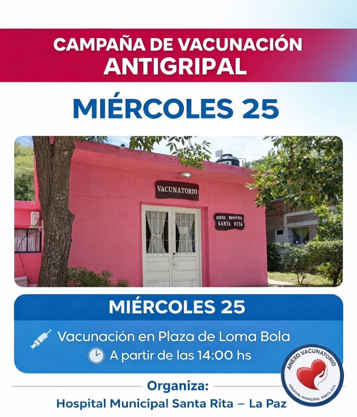 24 marzo, 2026Desde el Hospital Municipal Santa Rita – La Paz, a través de su Anexo Vacunatorio, continuamos trabajando para cuidar la salud de nuestros vecinos 💙