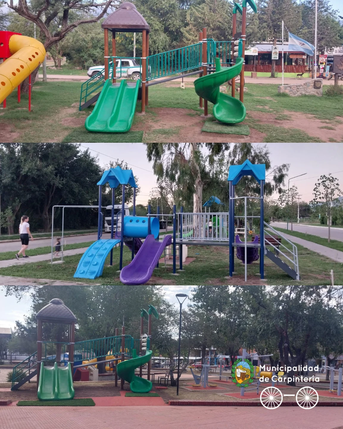 “… Seguimos trabajando y equipando los espacios públicos porque sabemos lo importante que es el encuentro entre las familias del pueblo… y de pueblos aledaños que vienen cada vez más seguido a #Carpintería …”