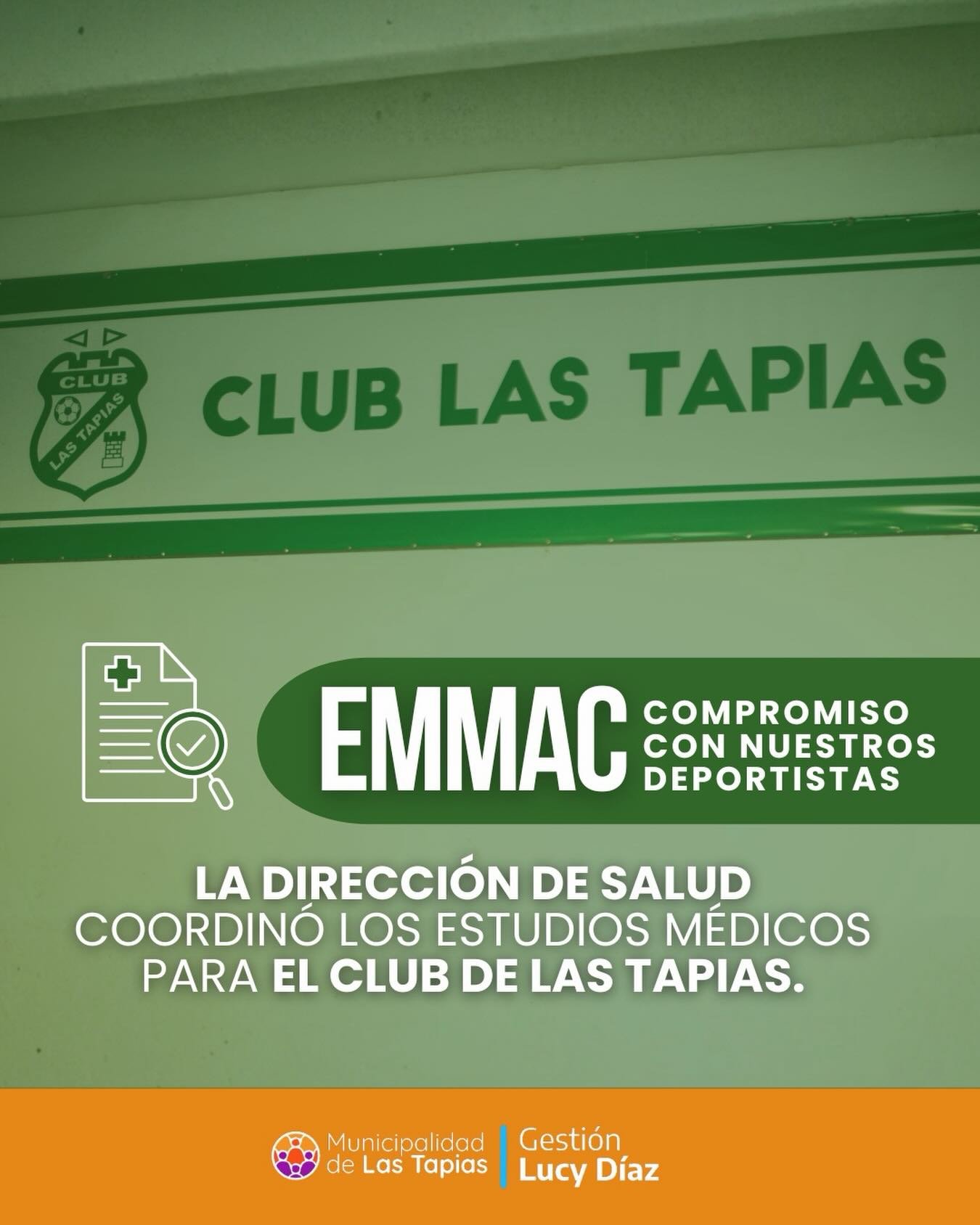 🧑🏽⚕️La Municipalidad de Las Tapias, a través de la Dirección de Salud, llevó adelante la coordinación de los Exámenes Médicos para la Mediana y Alta Competencia (EMMAC) destinados a los jugadores del Club de Las Tapias.