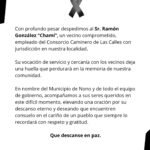 Con profundo pesar despedimos al Sr. Ramón González “Chamí”, un vecino compromet