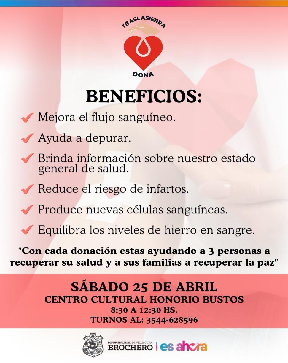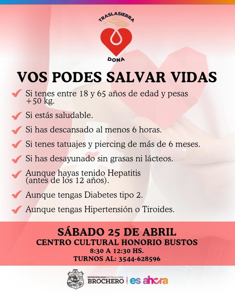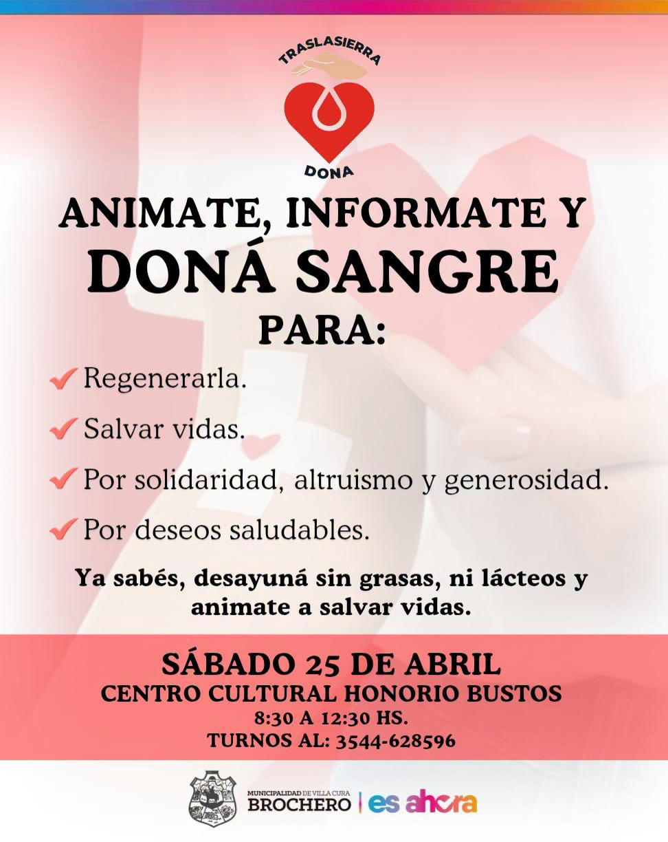 18 abril, 2026GRAN JORNADA SOLIDARIA DE DONACIÓN DE SANGRE EN CENTRO CULTURAL🩸