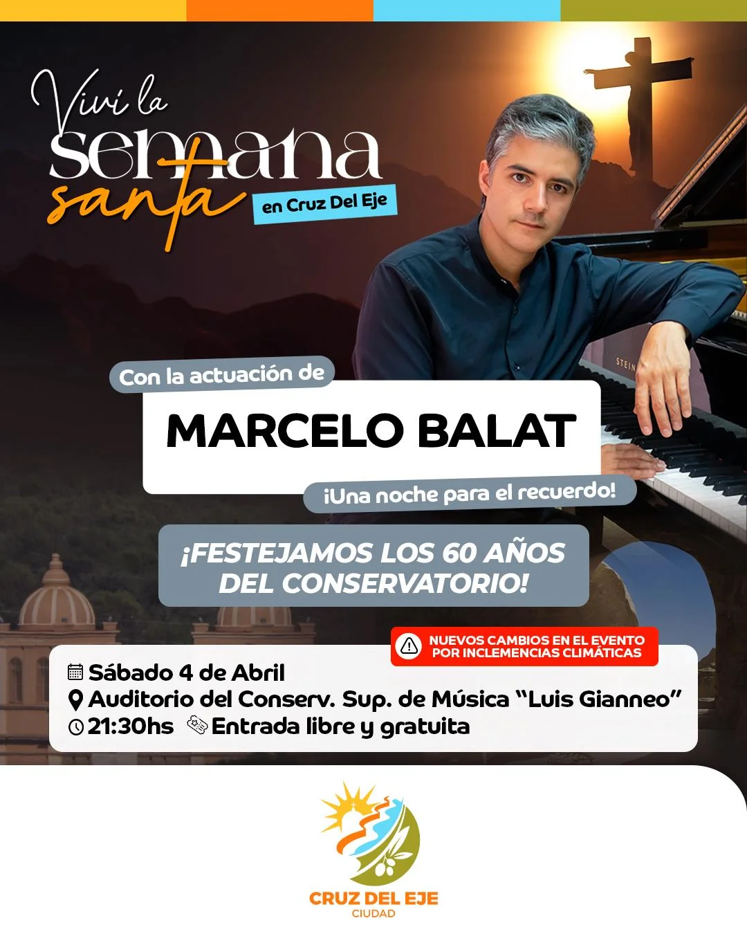 En este marco, la Municipalidad de Cruz del Eje ha decidido concentrar la propuesta artística en una velada especial en el Auditorio del Conservatorio Superior de Música “Luis Gianneo”, en el marco de su 60º aniversario.