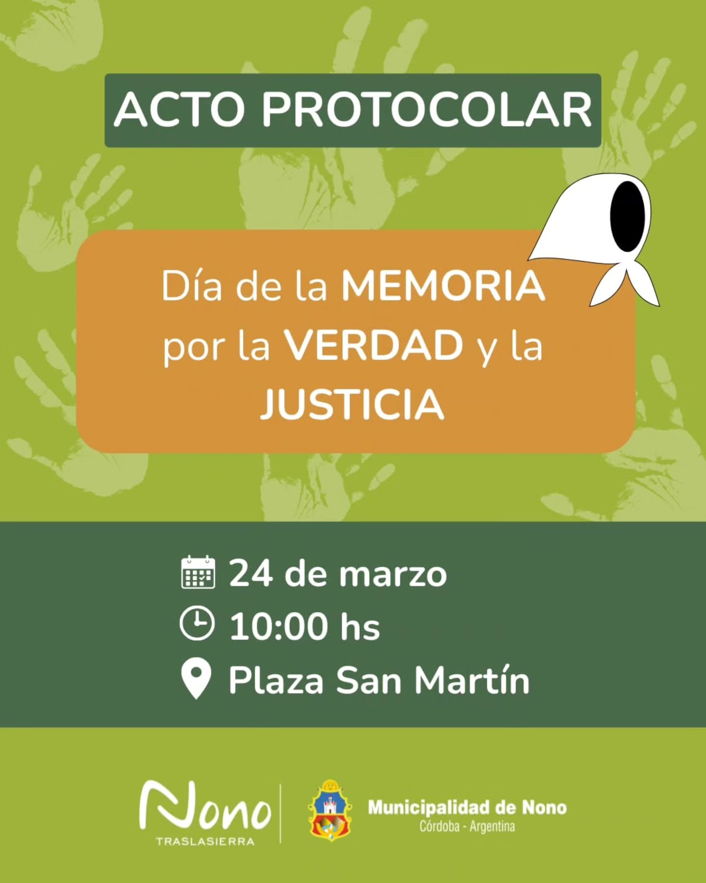 17 marzo, 2026🟩 Invitamos al acto protocolar del “Día de la Memoria por la Verdad y la Justicia”. 🖐🏻🤍
