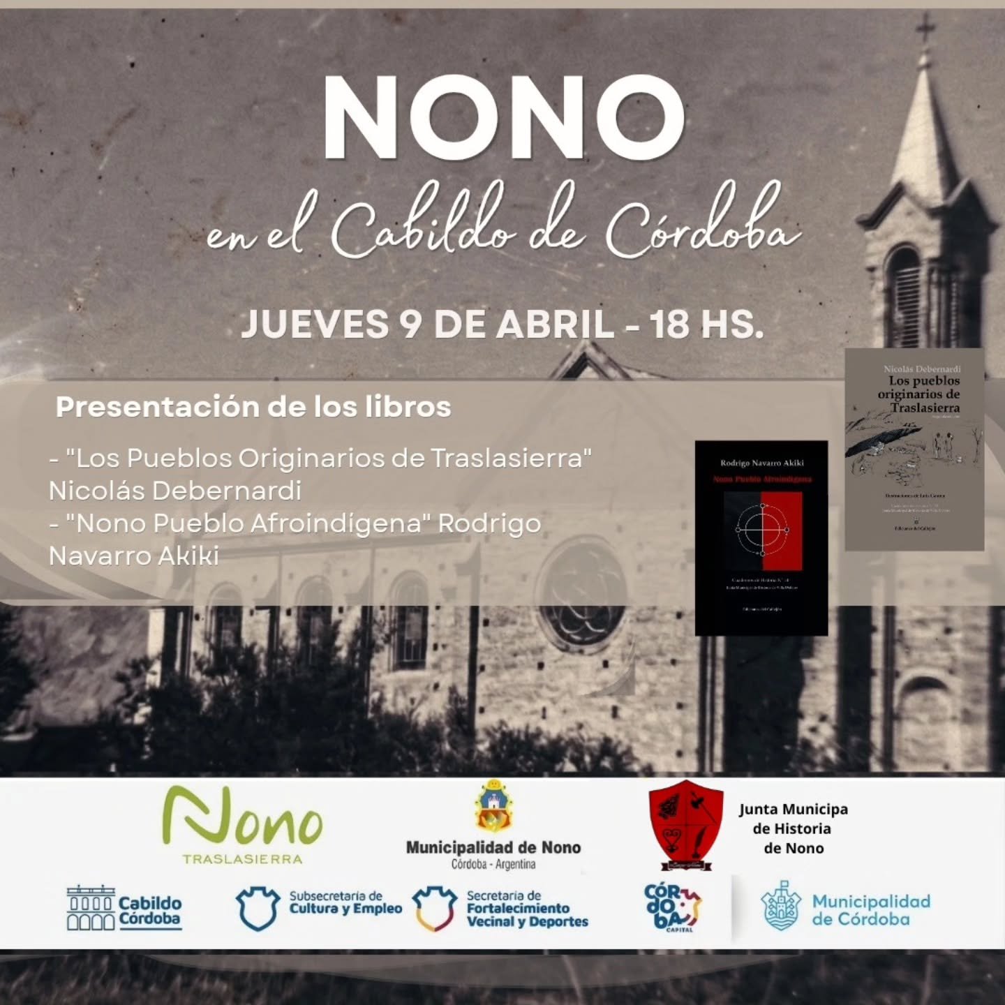 Invitamos a participar de las presentaciones de dos libros, de la mano de la Junta Municipal de Historia de Nono, que nos conduce a conocer nuestros orígenes.