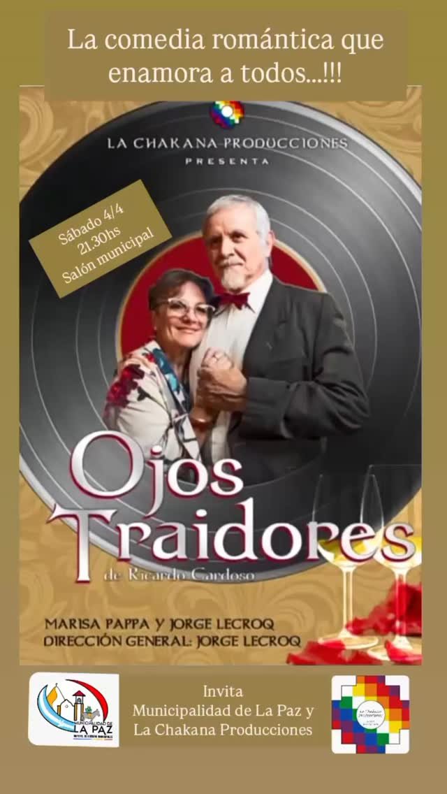 26 marzo, 2026 La Paz se prepara para disfrutar de una obra teatral que emociona, divierte y nos permite reflexionar sobre la soledad, el amor y los desencuentros afectivos. Comedia romántica escrita por Ricardo Cardoso e interpretada por Marisa Pappa y Jorge Lecroq.