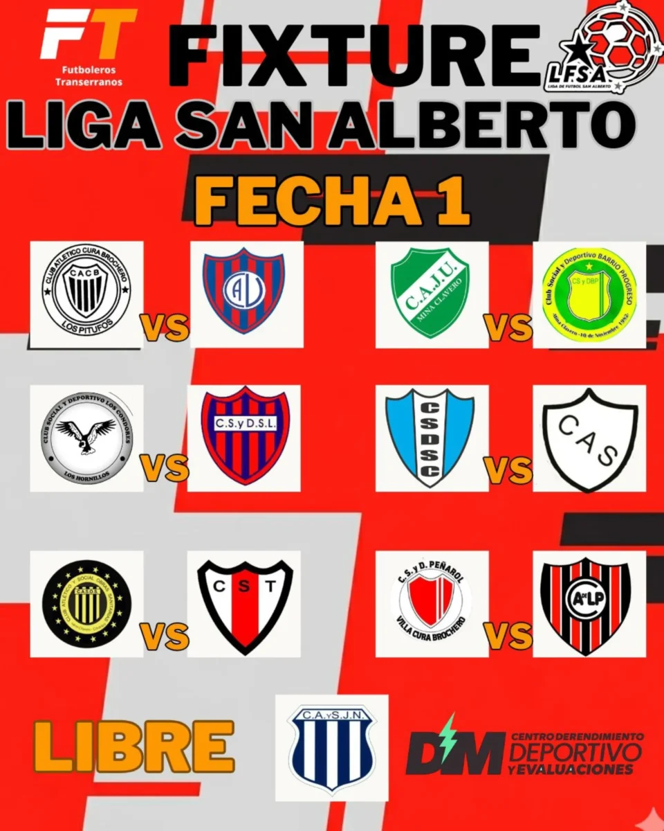 🟢La Liga de Fútbol de San Alberto ya tiene todo listo para el inicio de la temporada 2026. En las últimas horas se llevó a cabo el sorteo del fixture de la Primera A del Torneo Apertura, dejando definido no solo el camino de los equipos, sino también el formato de competencia.