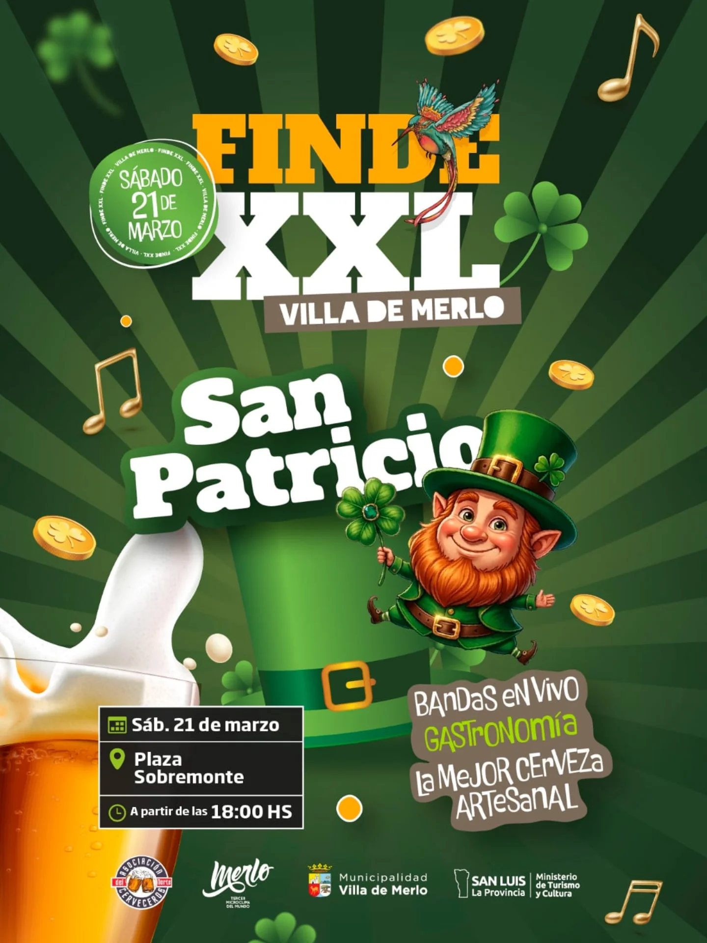 Merlo celebra San Patricio Este sábado 21 de marzo desde las 18 hs, la Plaza