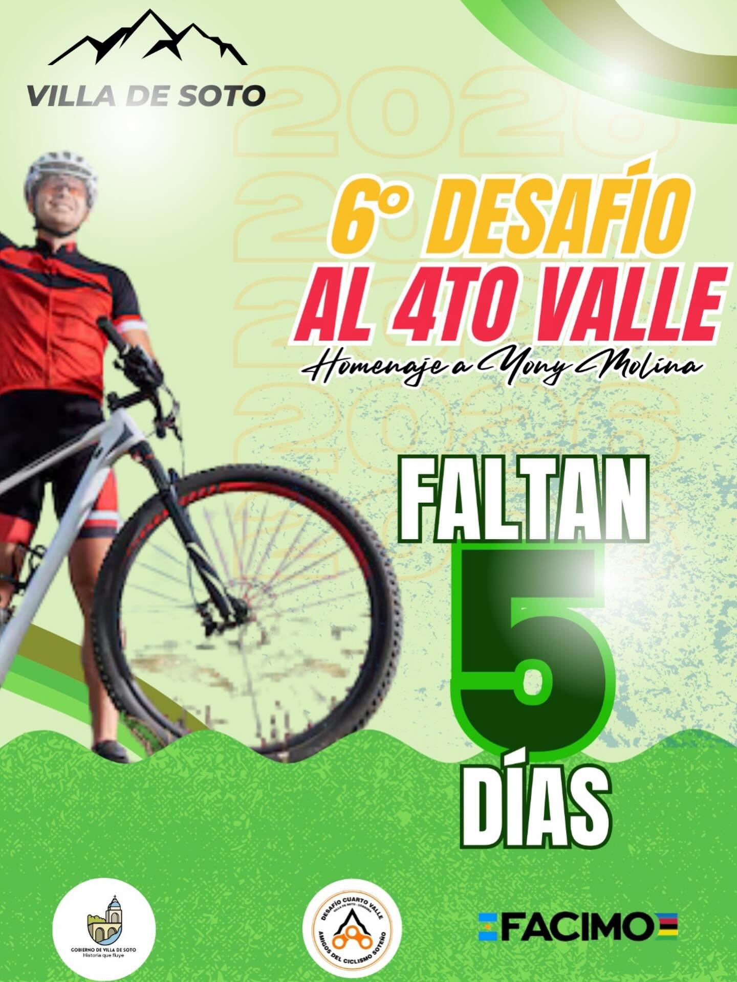 10 marzo, 2026#MuniDeporte #DesafíoAlCuartoValle – Quedan 5 días para la carrera de Mountain Bike más importante del Noroeste Cordobés.