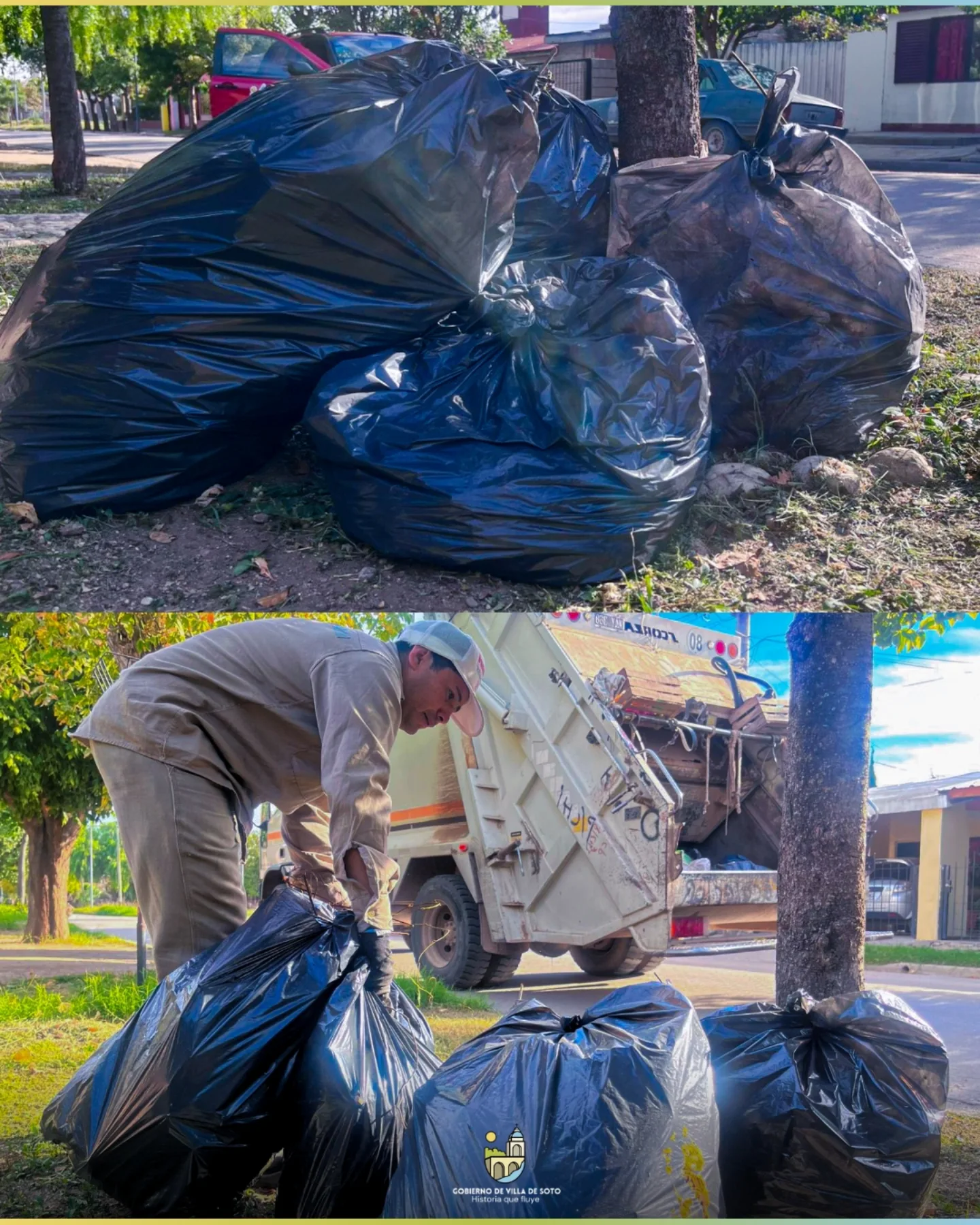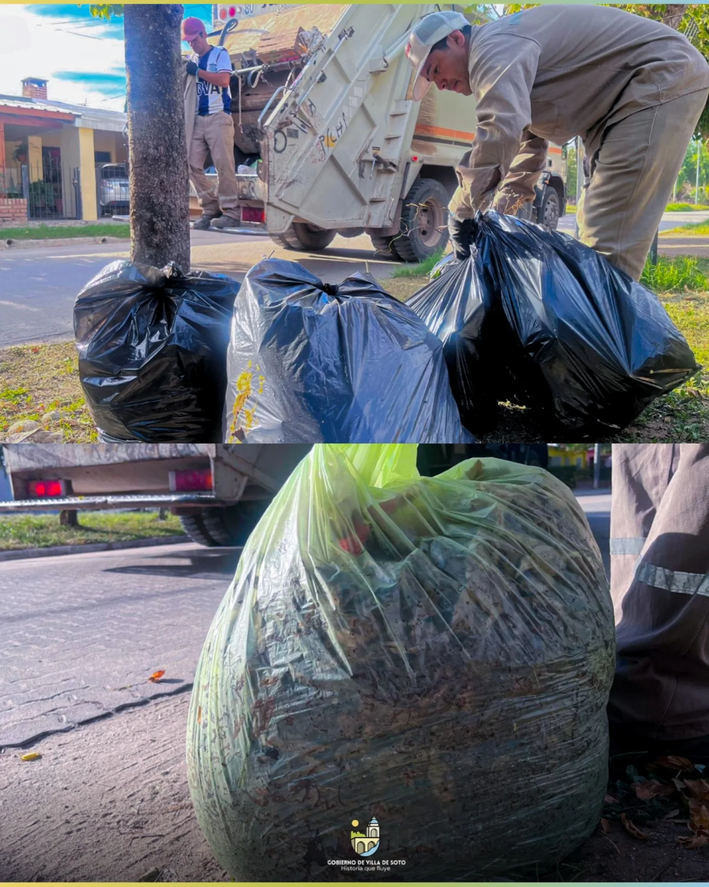 Solicitamos a los vecinos la colaboración de sacar las hojas secas en bolsas frente a sus domicilios, respetando el día asignado a cada barrio, para facilitar la recolección y mantener limpia nuestra ciudad. Entre todos cuidamos nuestros espacios comunes 🤝🏡.