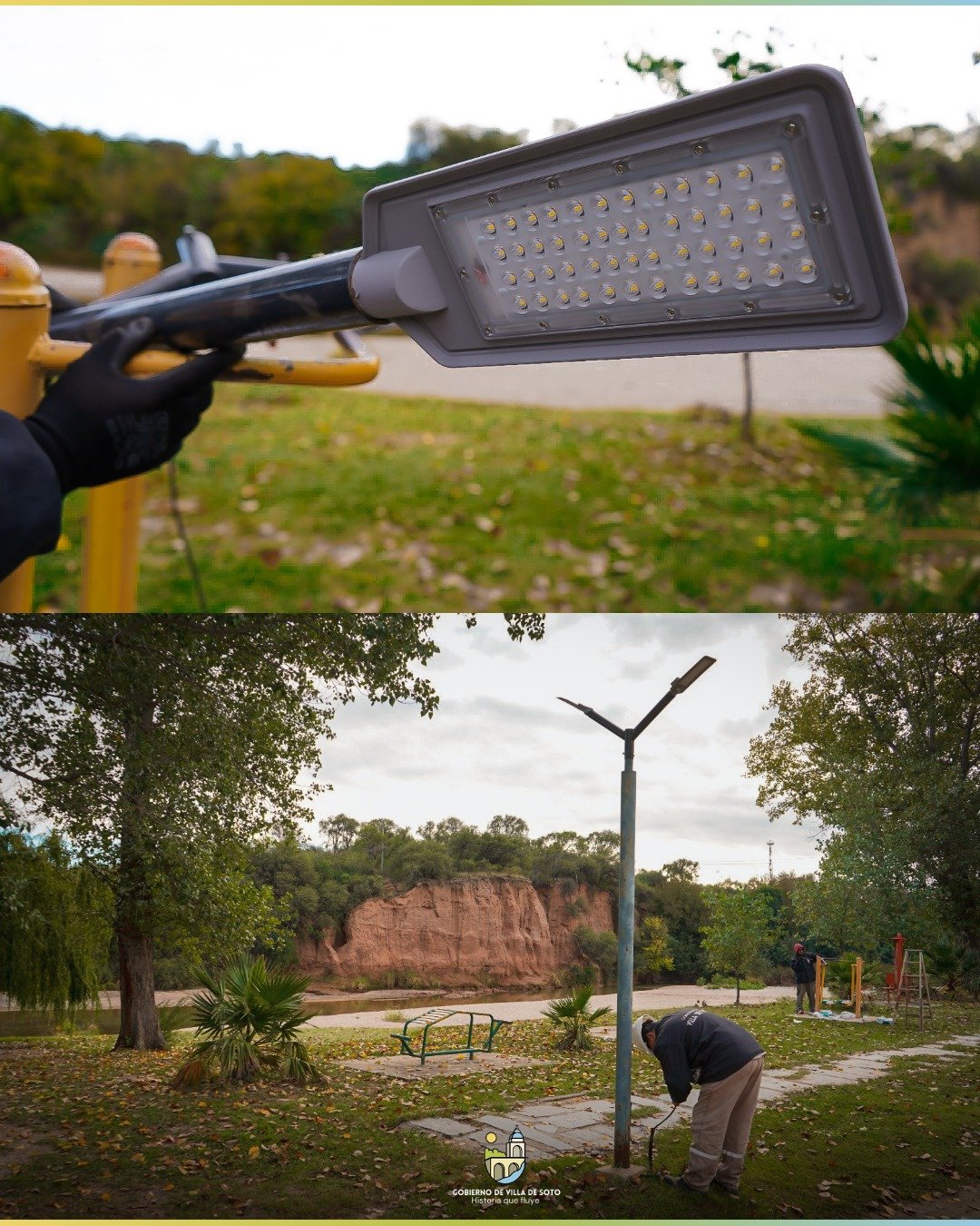💪🏽 Avanzamos con la renovación de luminarias en un sector de la costanera de nuestro río, reemplazando equipos halógenos por tecnología LED.