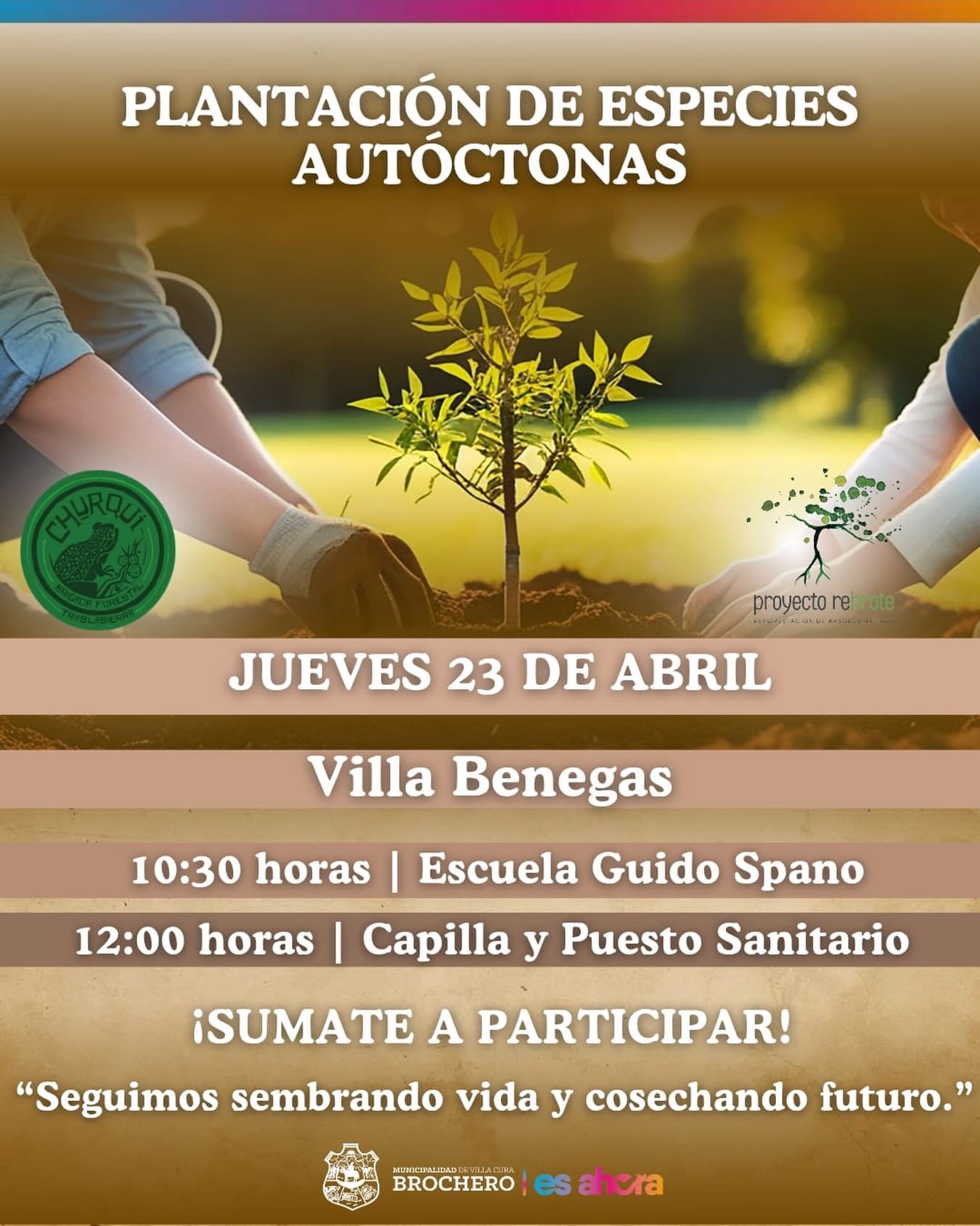 🗣️Invitamos a la comunidad y vecinos del paraje Villa Benegas, a participar de la plantación de especies autóctonas, el jueves 23 de abril durante la mañana.