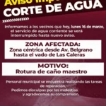 AVISO IMPORTANTE: CORTE DE AGUA Informamos a los vecinos que hoy, lunes 16 de