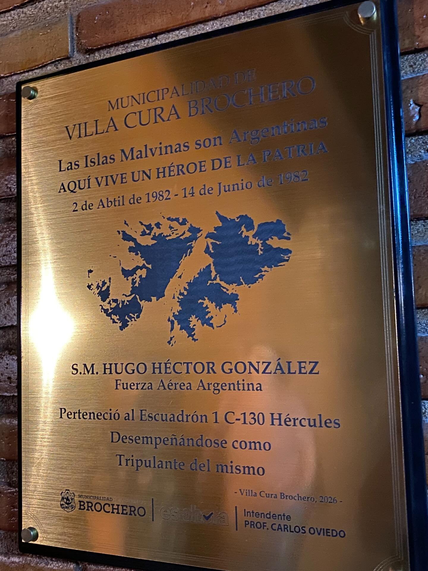 La Municipalidad de Villa Cura Brochero le colocó una placa en el ingreso de su hogar con el lema “Aquí vive un Héroe de la Patria”, uno de los reconocimientos que le otorga el pueblo de Cura Brochero, bajo ordenanza. El Intendente Carlos Oviedo visitó 3 hogares de los familiares de ex combatientes para colocar las mismas. Excelente 👏🏼👏🏼👏🏼🫡
