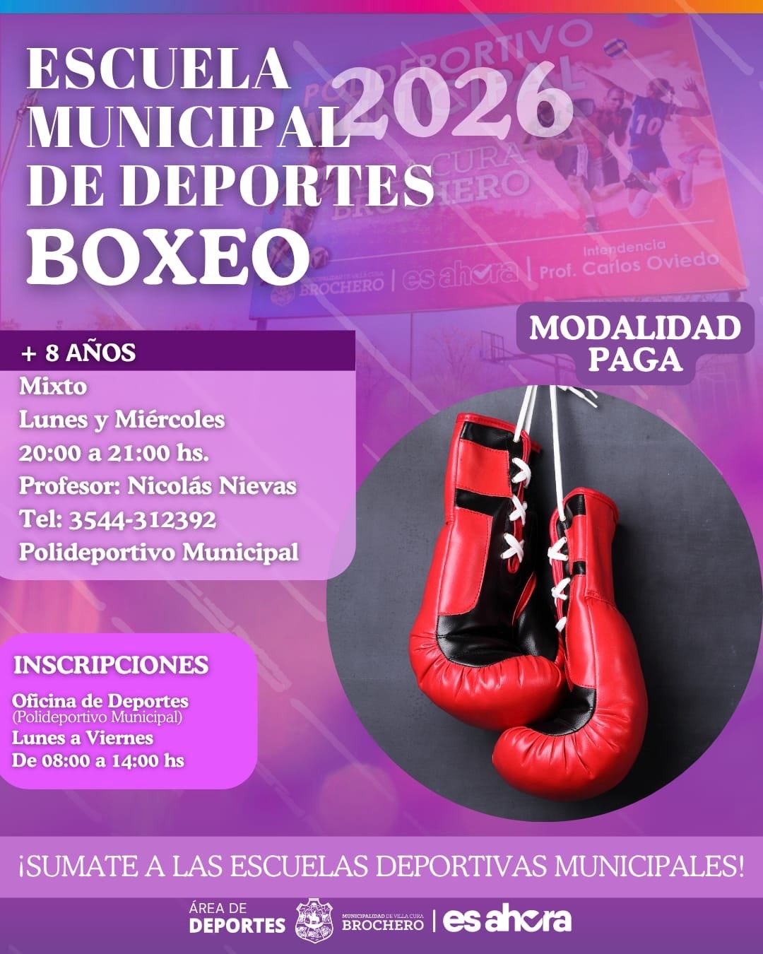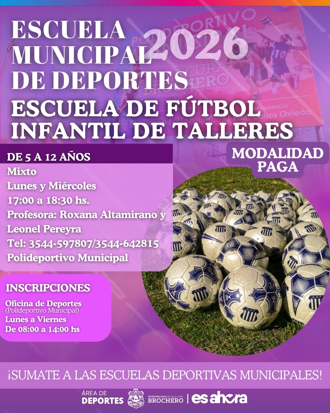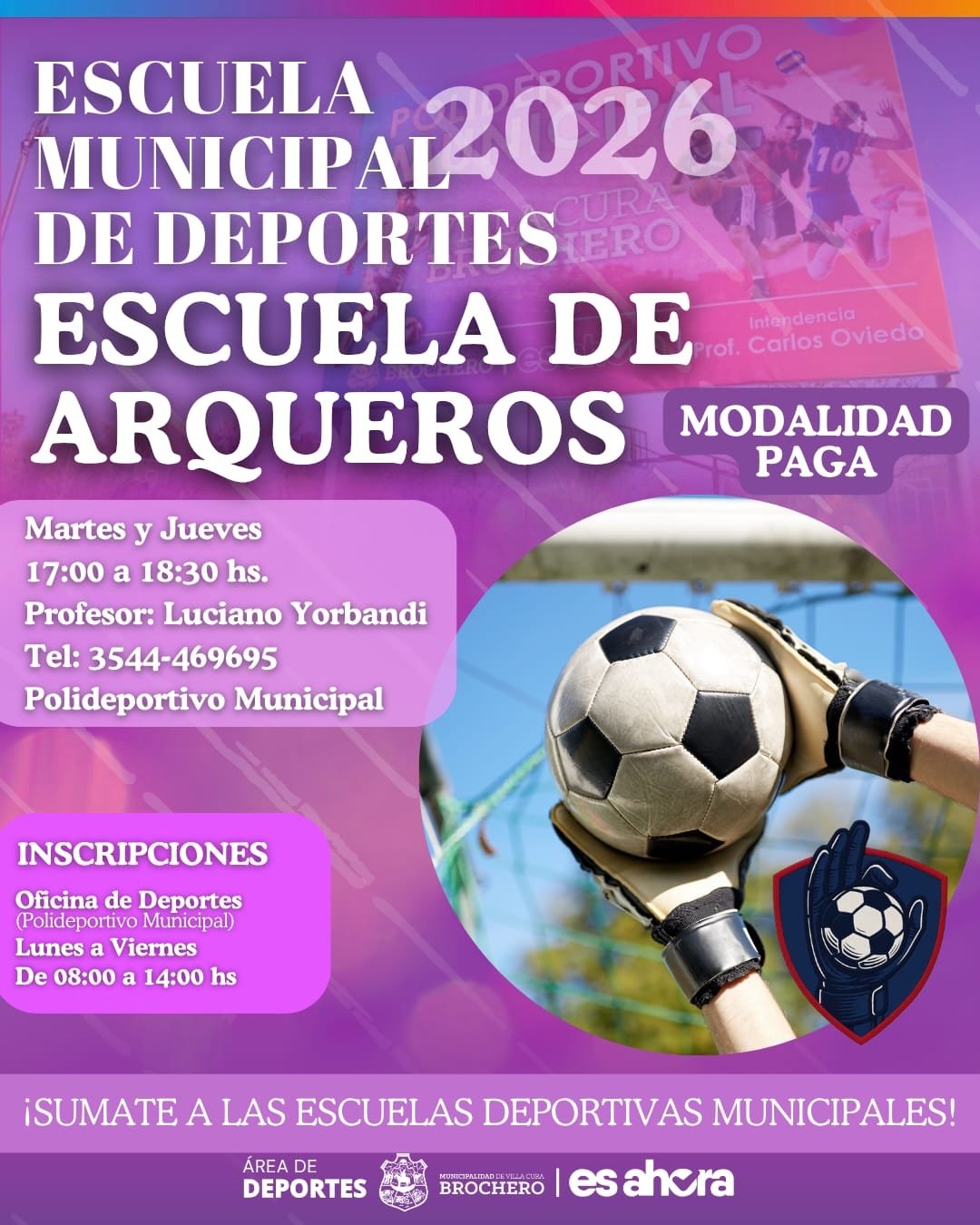 🙌🏾La Municipalidad de Villa Cura Brochero informa e invita a la comunidad a ser parte de las Escuelas Deportivas Municipales 2026.