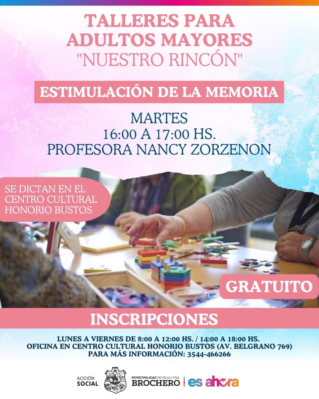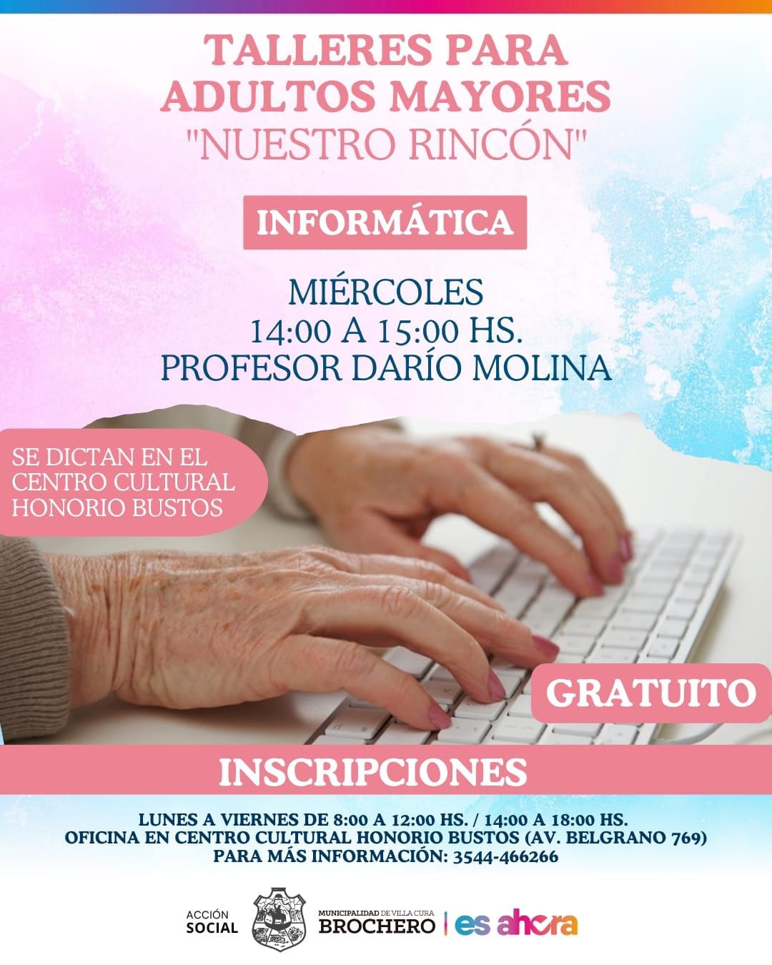 ♥️La Municipalidad de Villa Cura Brochero y el Espacio para la Promoción de Adultos Mayores “Nuestro Rincón” invitan a vecinos mayores de 60 años a sumarse y ser parte de los talleres que se dictan en el Centro Cultural Honorio Bustos.