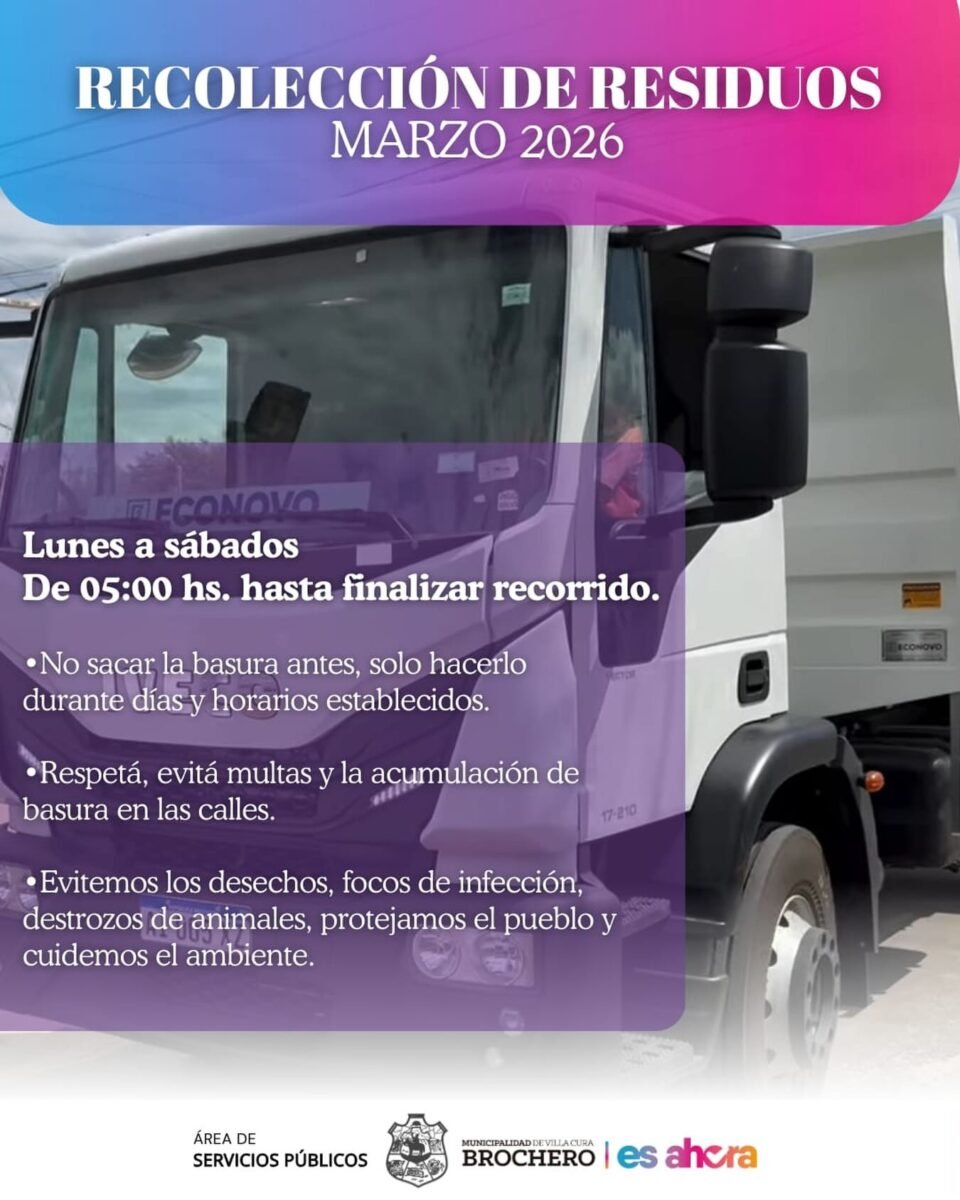 ðDÍAS DE RECOLECCIÓN DE RESIDUOS HASTA MES DE ABRIL ðð»La Municipalidad de Villa Cura Brochero informa a la comunidad los días y horarios de Recolección de […]