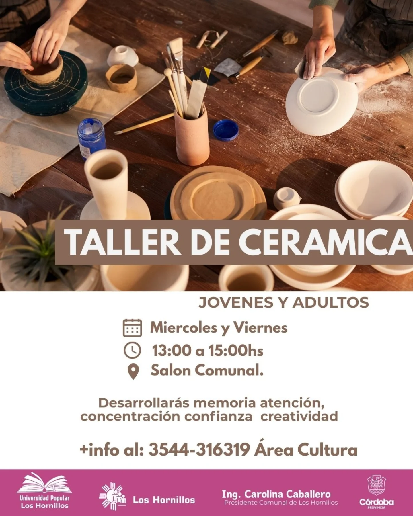 🏺 Cerámica: 13:00 a 15:00 hs.