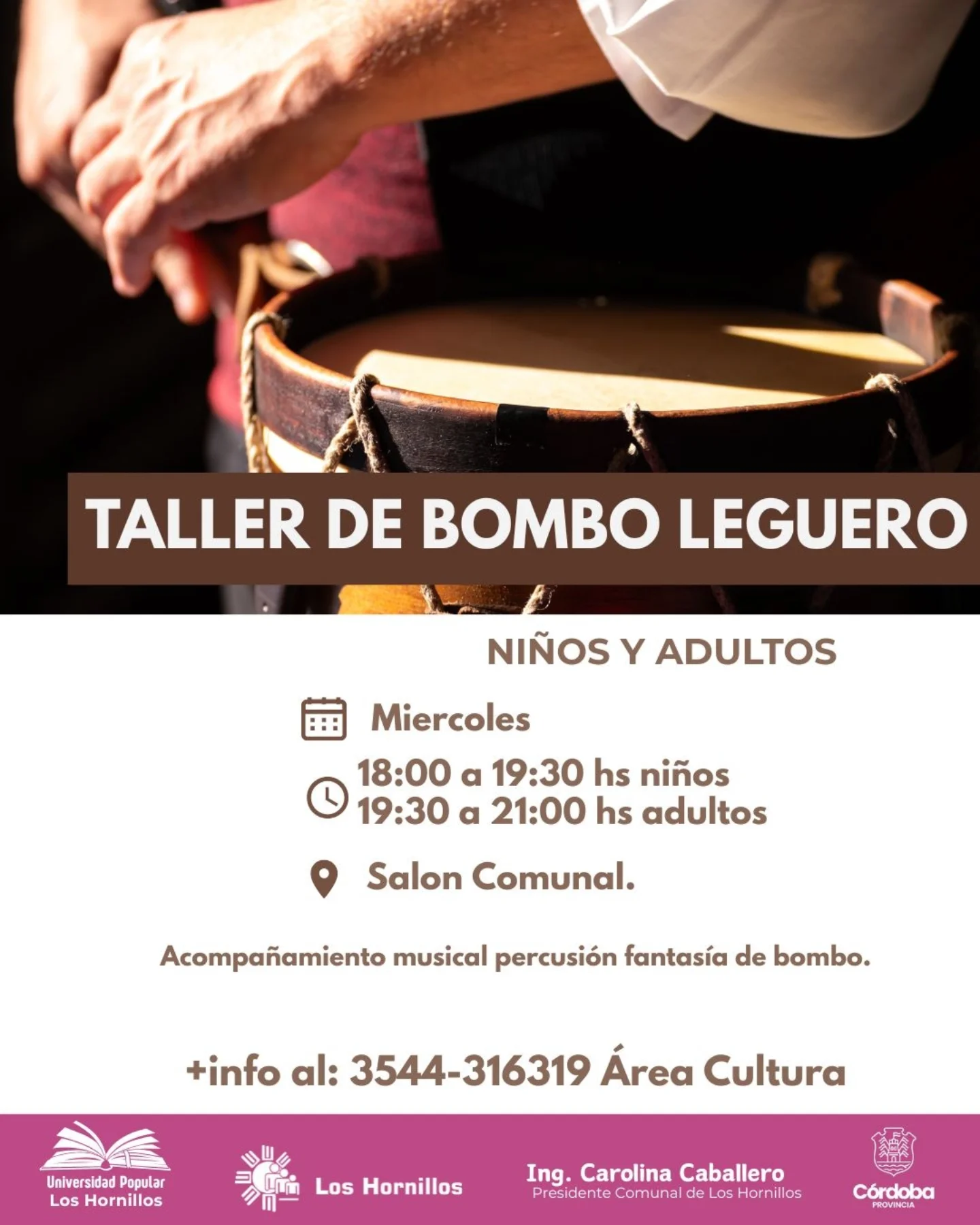🥁 Bombo Niños: 18:00 a 19:30 hs.