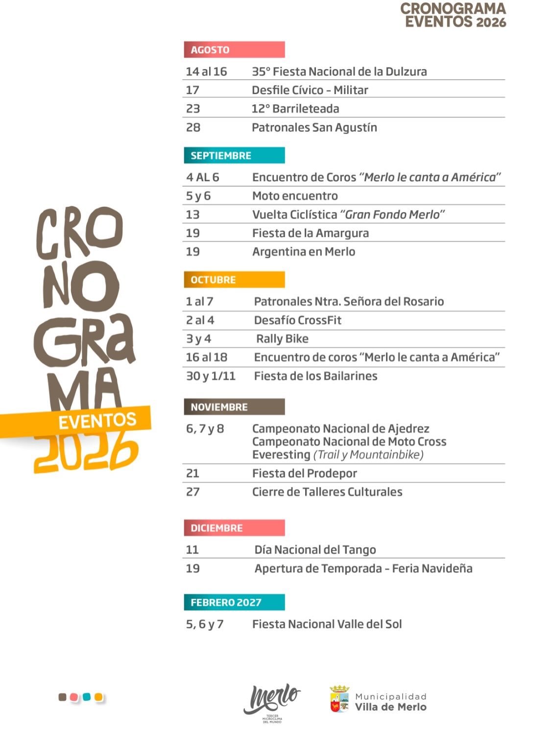 TE PRESENTAMOS NUESTRO CALENDARIO DE EVENTOS 2026 Si queres sumar tu evento e