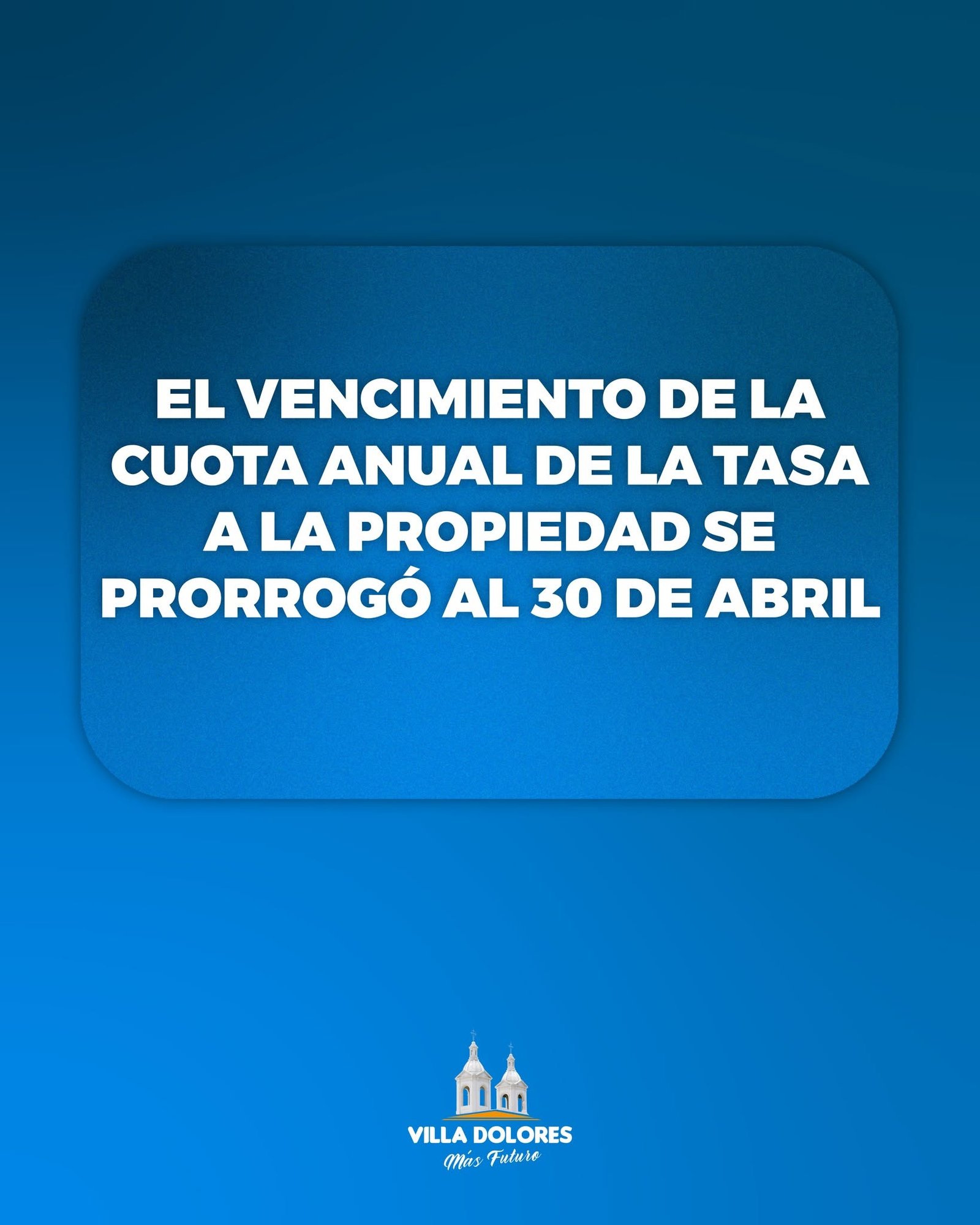 Informamos a los vecinos que se prorrogó el vencimiento de las cuotas anuales de las tasas municipales: