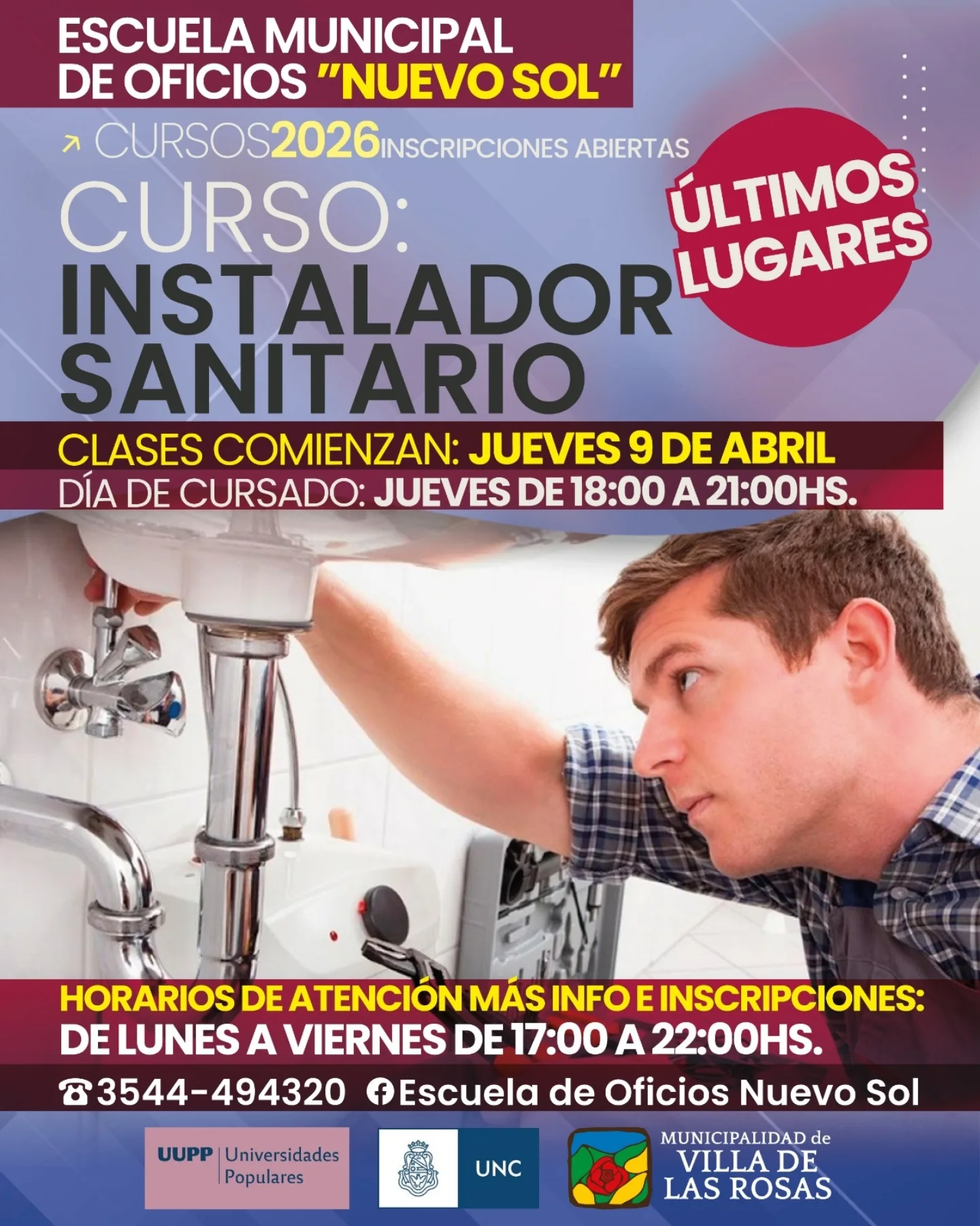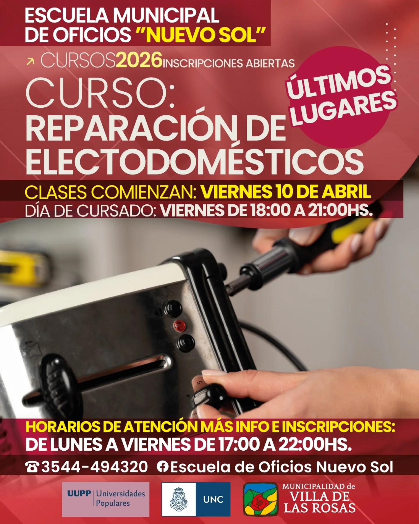 📌 Inscripciones: Escuela Municipal de Oficios “Nuevo Sol”, lunes a viernes de 17 a 22 hs.