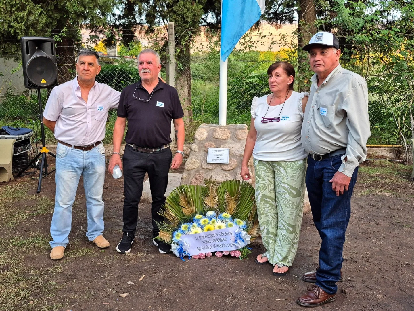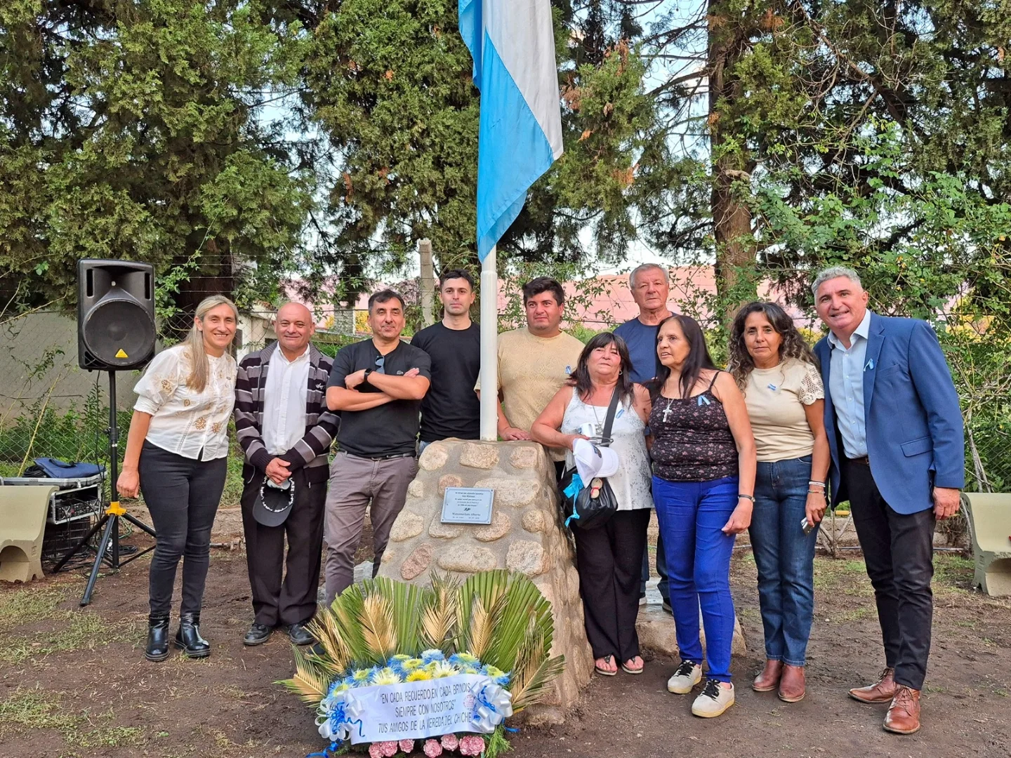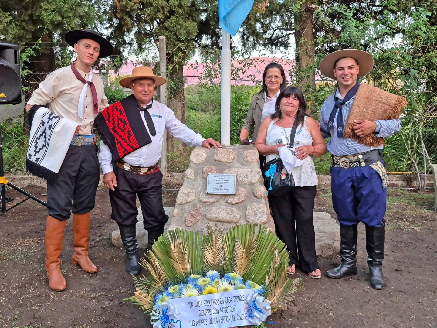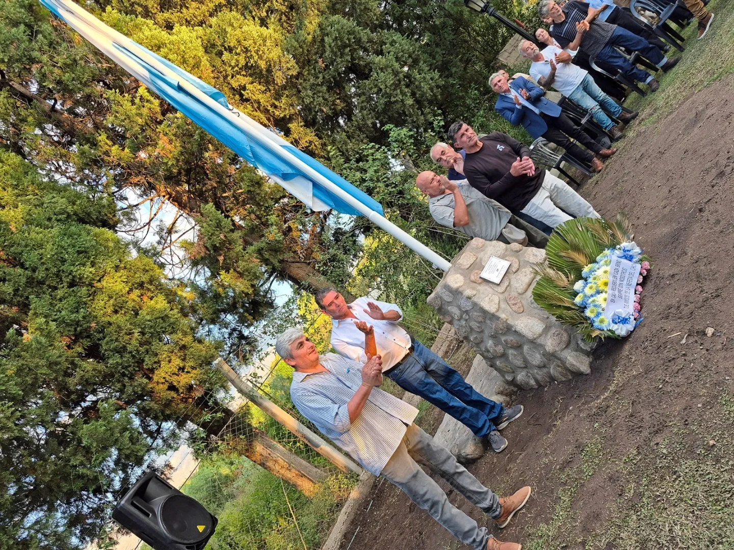 Durante la ceremonia se vivieron momentos de profunda emoción, como el izamiento de la bandera en el nuevo mástil, el descubrimiento de una placa en homenaje al veterano Luis Alberto Manzone, acompañado por una ofrenda floral de sus amigos.